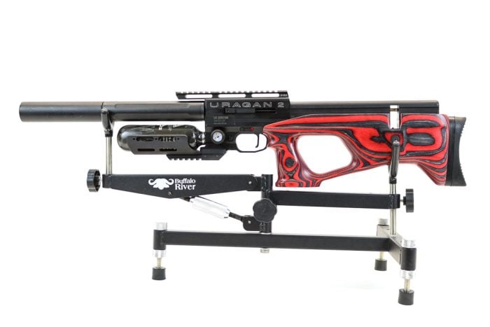 We have a AGT Uragan 2 .22 with the Red Laminate stock and comes with 1 x magazine, fill probe and a AGT 150mm Moderator.