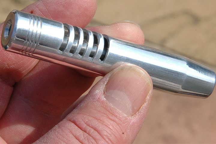 Air Strippers are an increasingly popular device which can connect in the same way to the end of the barrel. These again have ports or holes cut into the outer body, but also feature a small aperture, either a hole, series of holes, or an internal cone section. The idea here is that the pellet exits the barrel, then almost immediately passes through the aperture or cone, and this has the affect of stripping away the spent turbulent air following the pellet, leaving it unruffled on it’s way to the target.