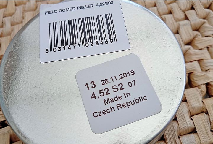 Quality pellet brands such as JSB often come with a sticker on the reverse of the tin, and this provides information which can prove invaluable to serious competition shooters. There will normally be a die number (the particular machine the pellets came from), a batch number, a date of manufacture, and also the pellet head size.