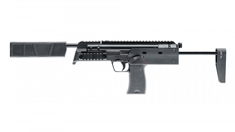 At first sight, no one would suspect a classic break-barrel airgun behind this design, although it scores strongly in this area as well. Similar to the original, this airgun settles between the rifles and pistols. The forestock and collapsible stock ensure safe handling and significantly increased accuracy over a conventional pistol, while retaining its lightweight and compact design. The mock silencer eases cocking of the powerful spring. In true style, the MP7 offers countless mounting options for optics and other accessories via Picatinny rails.