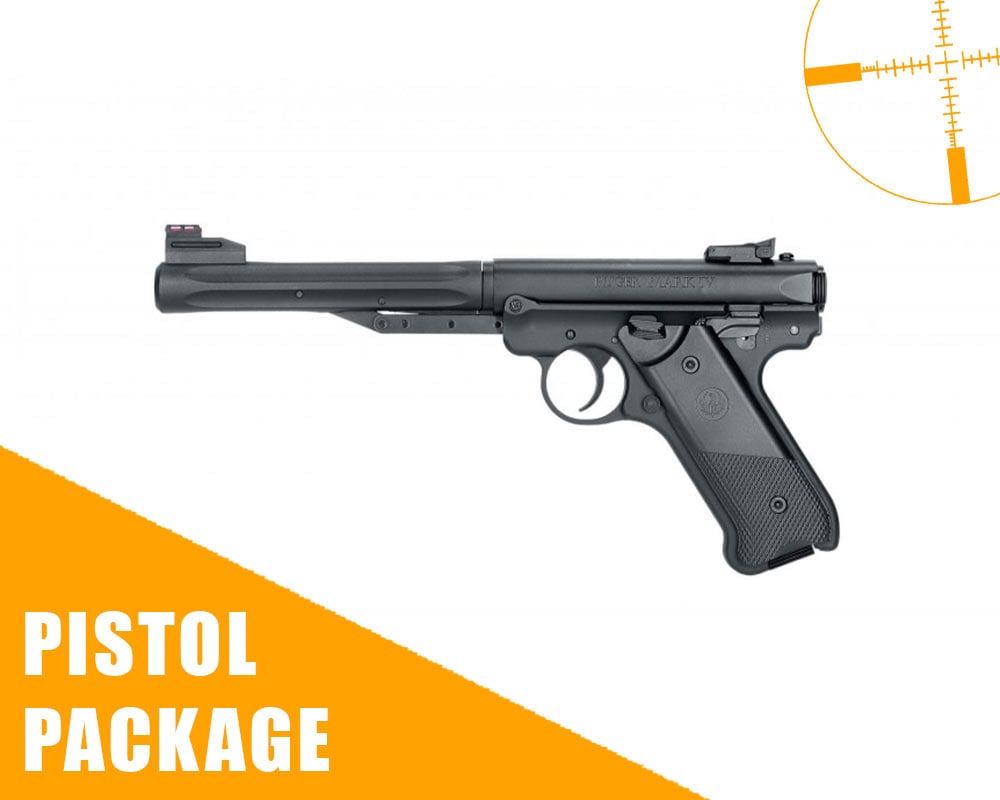 The Umarex Ruger Mark IV Package is a genuine spring powered replica of Ruger’s LR pistol of the same name.