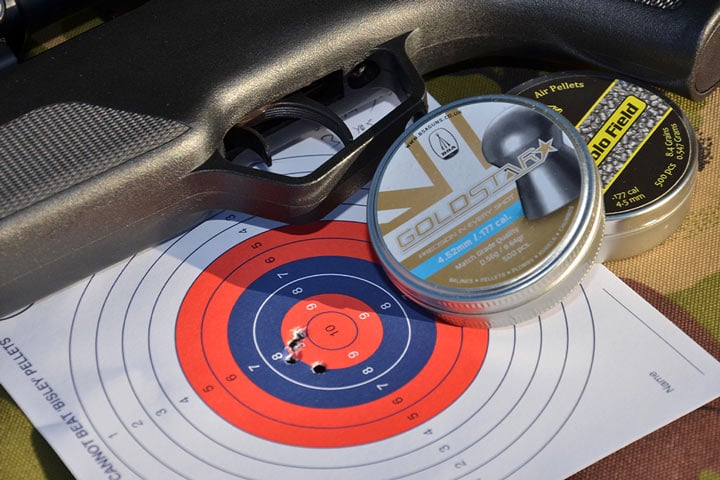 When shooting at paper targets, these can be mounted in a steel target holder, and the best scenario is a robust heavy gauge steel box, which catches the pellets as well as holds the target. Never use wood, as this can splinter and also cause ricochets. Pellets eventually eat through all wood, and easily through garden fences, so don’t be surprised, and take precautions.