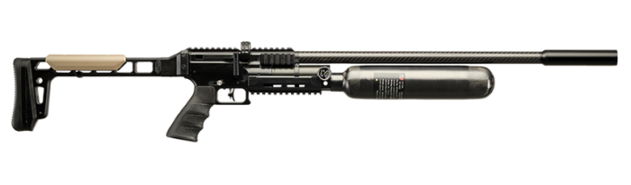 The Snowpeak AP1000B gives you full sized PCP performance in a portable, reliable setup. It uses a smooth regulated system with a 500cc carbon bottle that fills to 250 bar which keeps your shots consistent and stable.